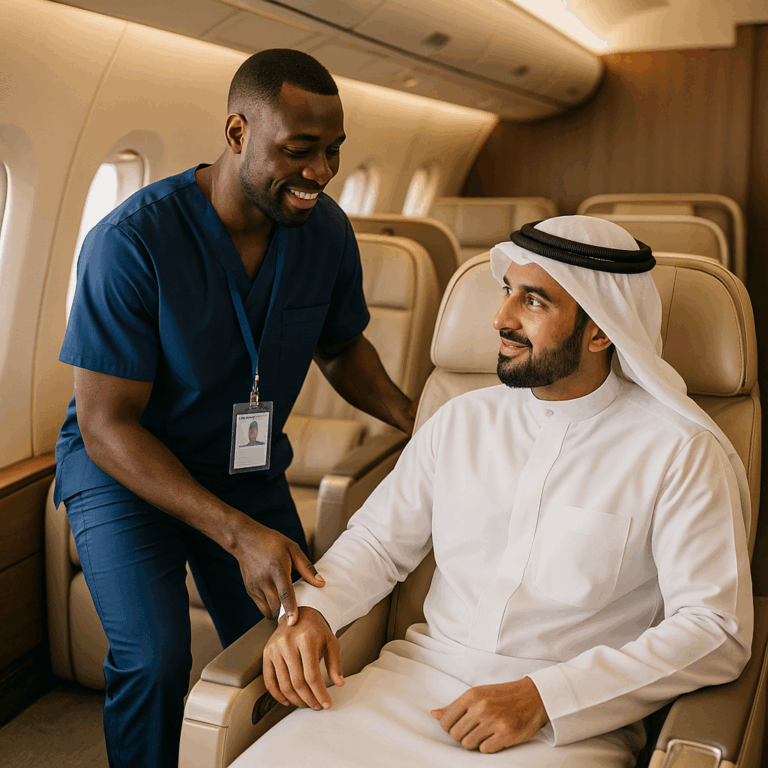 Nurse Escorts – In-flight clinical supervision, medication management, and post-operative monitoring.